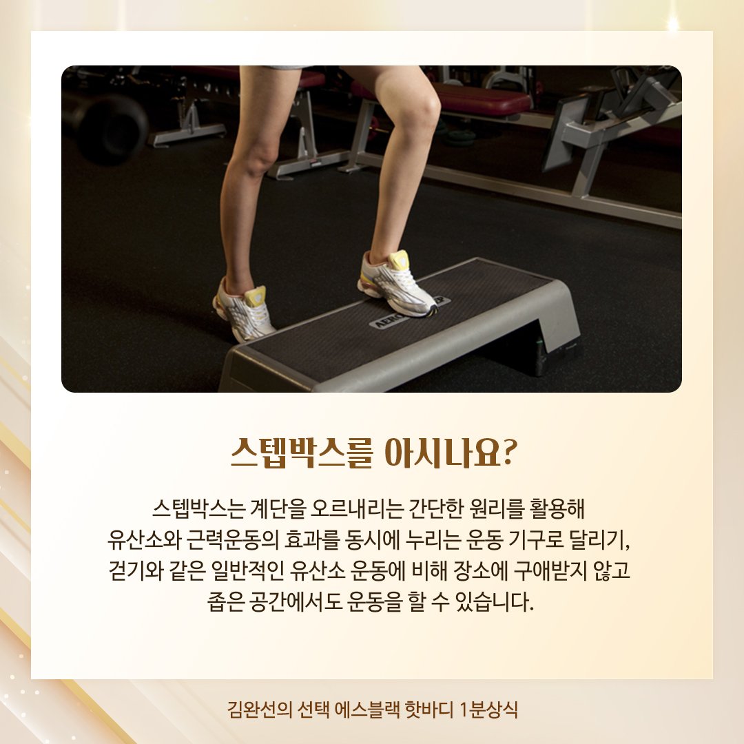 [BY 김완선 에스블랙] 홈트로 제격, 스텝박스 운동법 #카드뉴스 1 스텝박스를 아시나요? 스텝박스는...