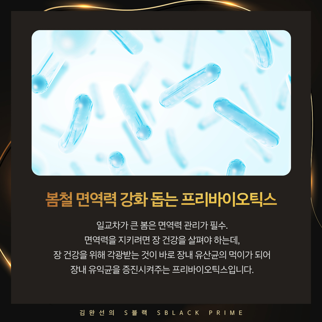 일교차가 큰 봄은 면역력 관리가 필수이죠. 면역력을 지키려면 장 건강을 살펴야 하는데, 장 건강을 위해 각광받는 것이 바로 장내 유산균의 먹이가 되어 장내 유익균을 증진시켜주는 프리바이오틱스입니다.