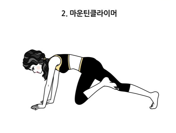 ③ 일정한 템포로 다리를 바꿔가며, 무릎이 가슴을 향하도록 당깁니다.