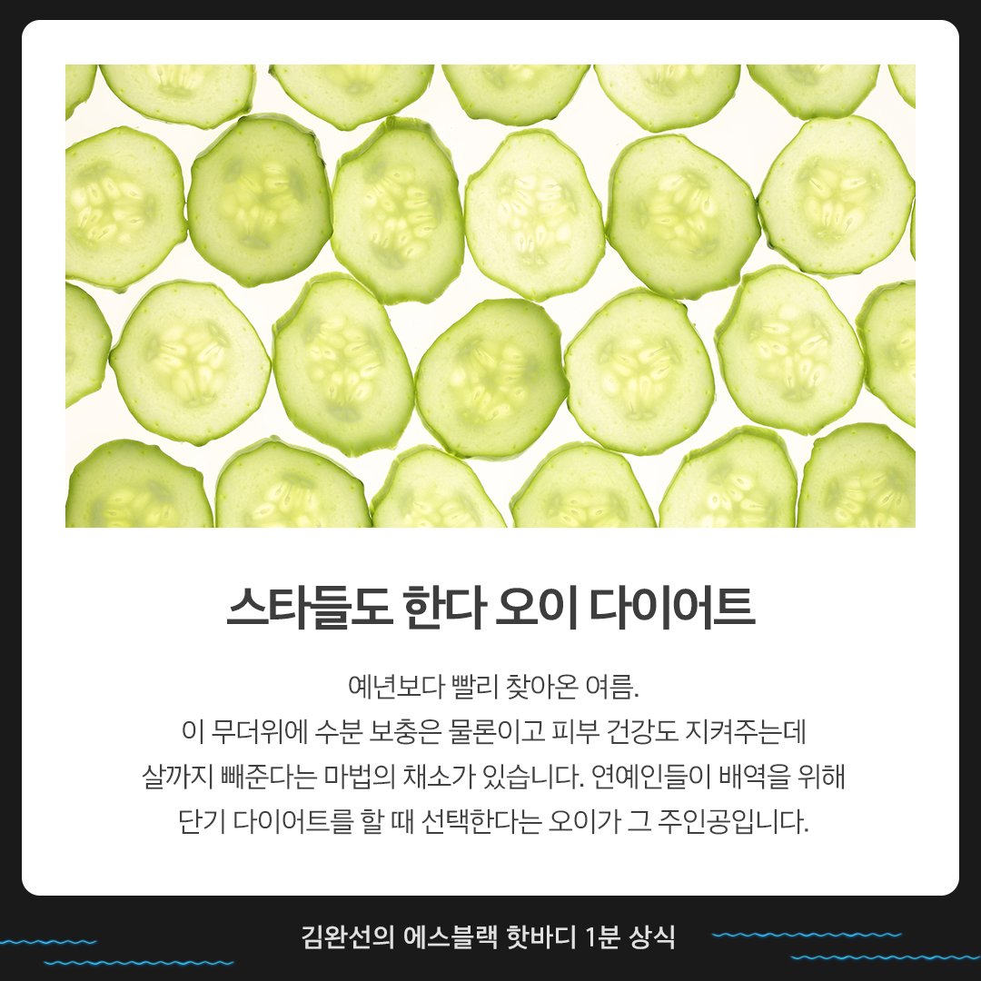 [BY 김완선 에스블랙] 여름 다이어트에 오이가 좋은 이유 #카드뉴스1 스타들도 한다 오이 다이어트 예년...